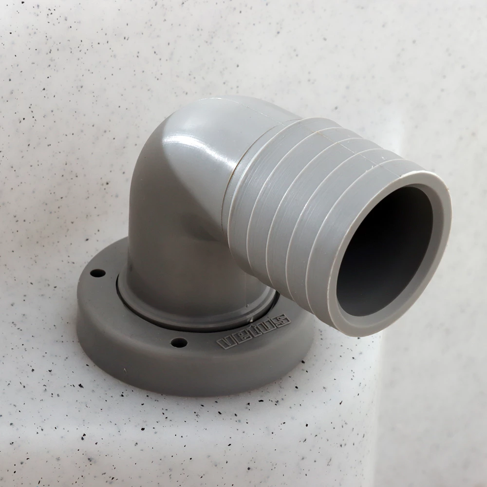 - Suction pipe with diameter 38 mm angled hose connector, for connection to deck plate