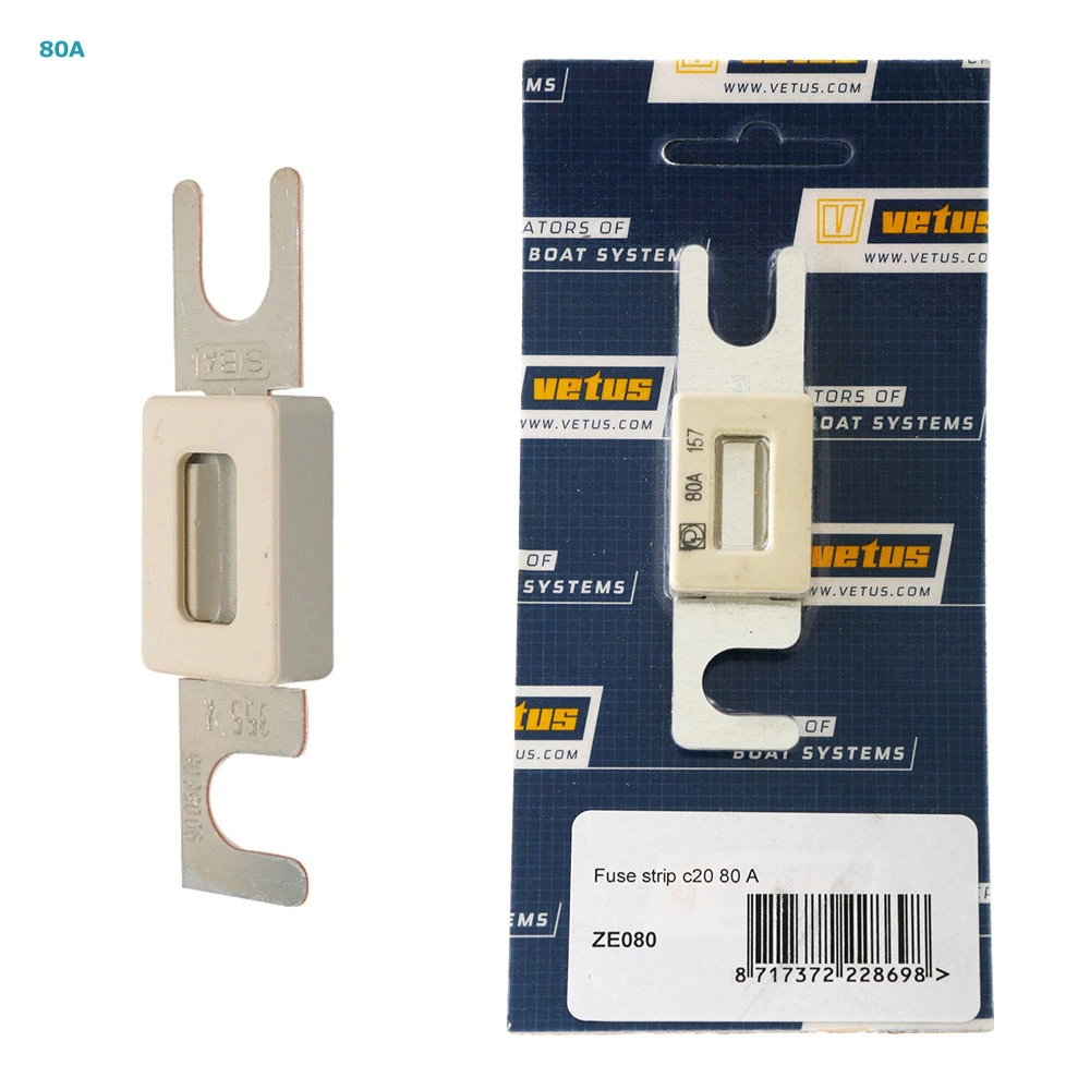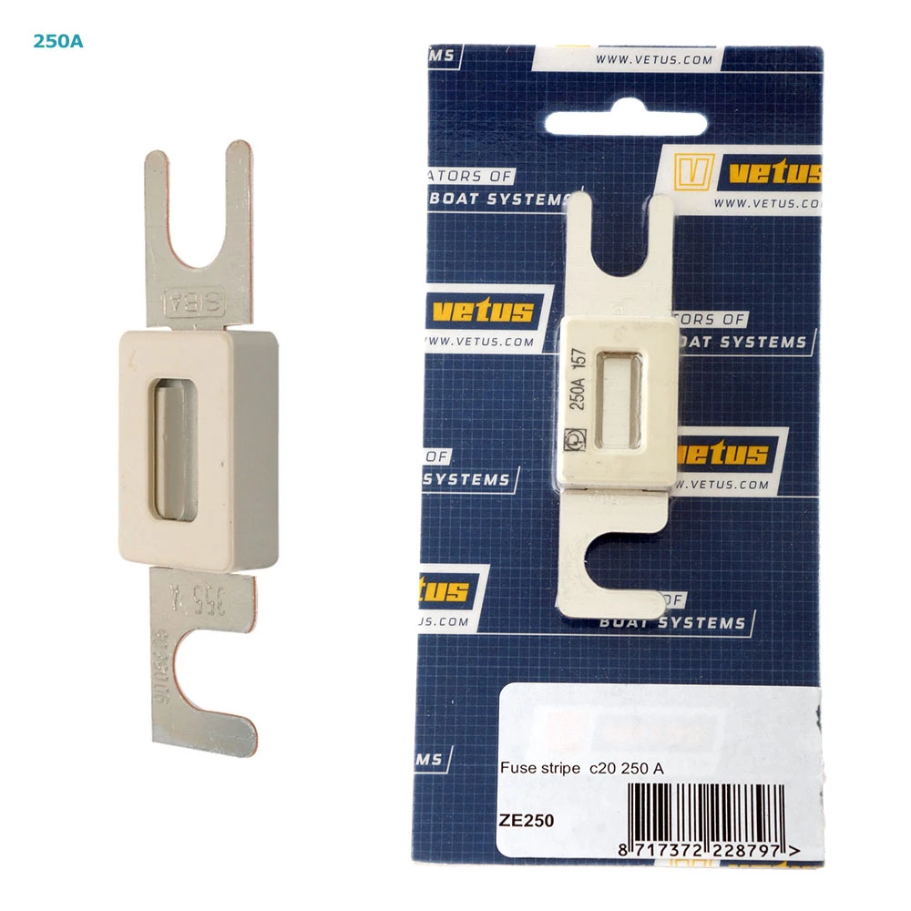 The VETUS C20 Strip Fuse is encapsulated in glass to prevent splatter and fire. Suitable for thrusters, windlasses etc. Now you’ll always be prepared to replace failed or blown fuses.