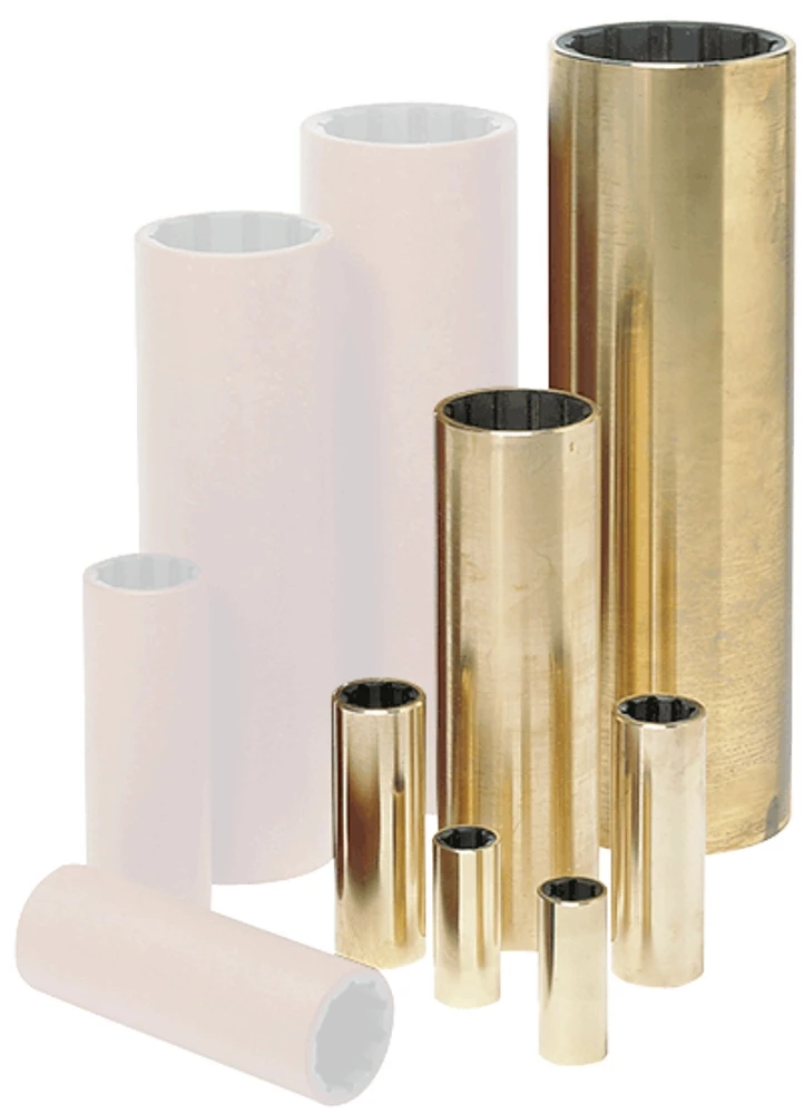 Water lubricated Cutlass bearing. Polyurethane-rubber lining. Outer bushings made of brass. VETUS rubber bearings are, upon request, also available for larger shaft diameters.