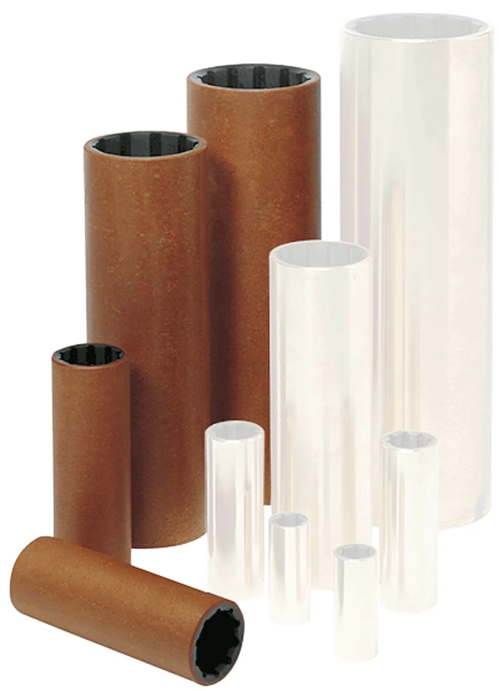 Water lubricated Cutlass bearing. Polyurethane-rubber lining. Outer bushings made of phenolic resin. Phenolic resin is lighter in weight, cannot corrode and may be replaced very easily. Ideally suited for use in aluminium boats.