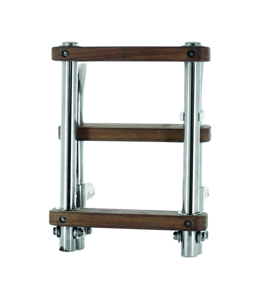 Available with 3 steps in teak. Max load 250 kg. Stainless steel (AISI 316).