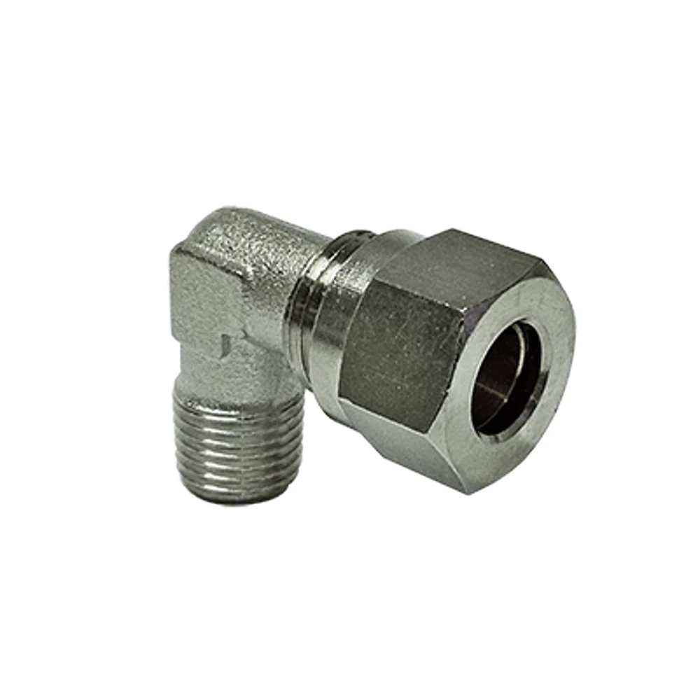 Male stud 90deg elbow hose connector for Vetus HTP Hydraulic Steering Helm pumps. Replaces straight connector on helm pumps without non-return valve block to allow for fitting in confirmed spaces.