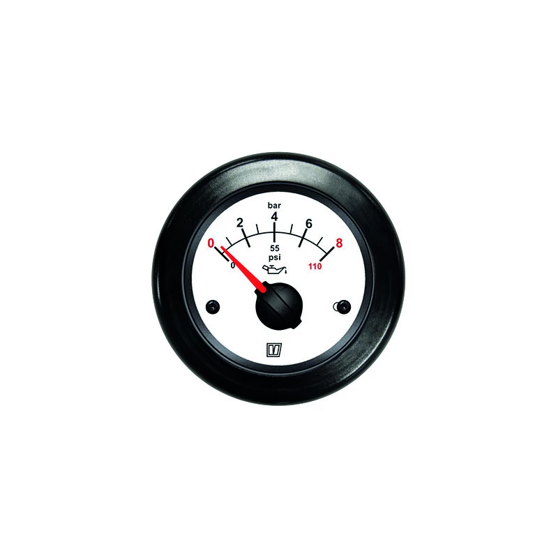 White, 12/24V, (0-8 Kg/Cm2), Cut-Out Size diameter 52 Mm (Excl. Sensor). The range of VETUS gauges received an update; the gauges are more accurate and the bezels are redesigned and of higher quality. Dials are translucent and are illuminated by dimmable LEDs from below, offering the best possible readability. There is a choice between yellow or red illumination. The gauges are double glazed to minimise condensation and come with two different bezels: one solid black and one premium chrome. All gauges except the tachometer are 63 mm diameter (cut-out 52 mm). The rudder angle indicator is also available in this diameter as well. These standardised dimensions ensure you can easily replace your existing gauges with one from VETUS. All gauges are backwards compatible, only the tachometer requires a plug adapter.