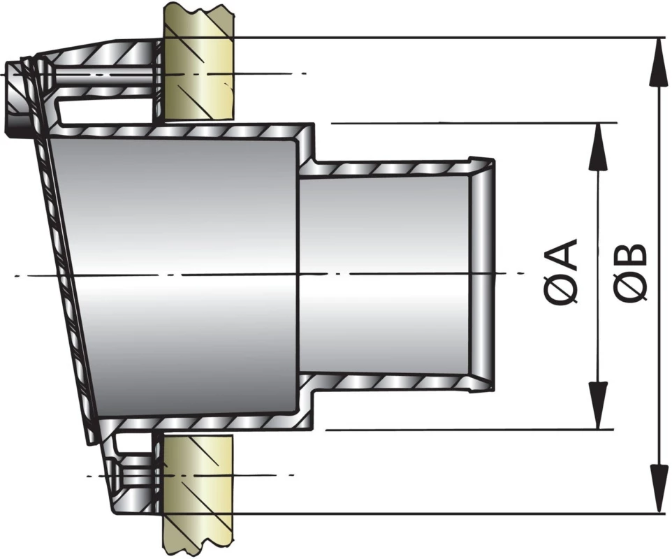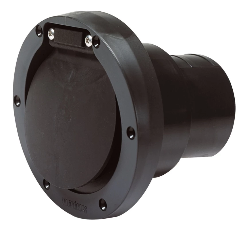 | Transom exhaust connection with integrated rubber check valve. High quality synthetic materials. The exhaust hose can be fitted directly to this transom |