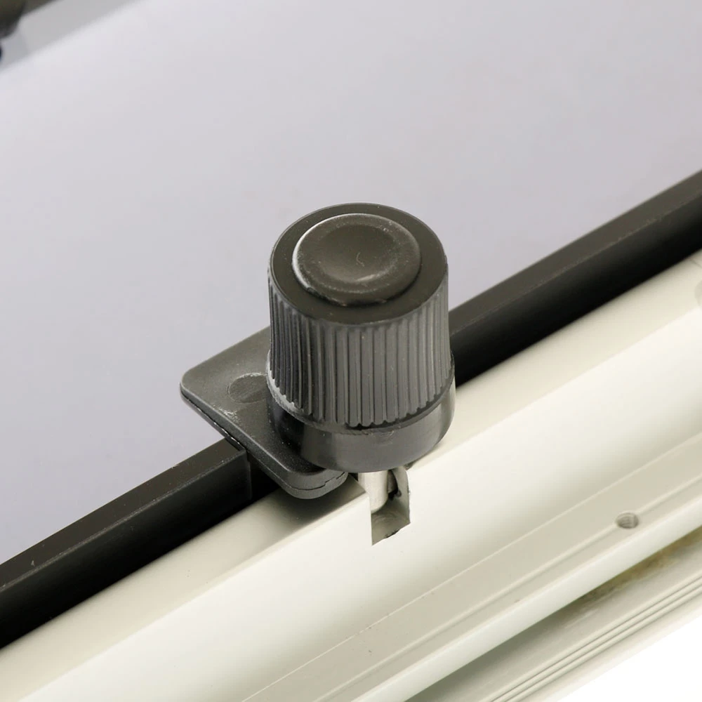 10mm opening pane in smoke colour set in an aluminium frame. The