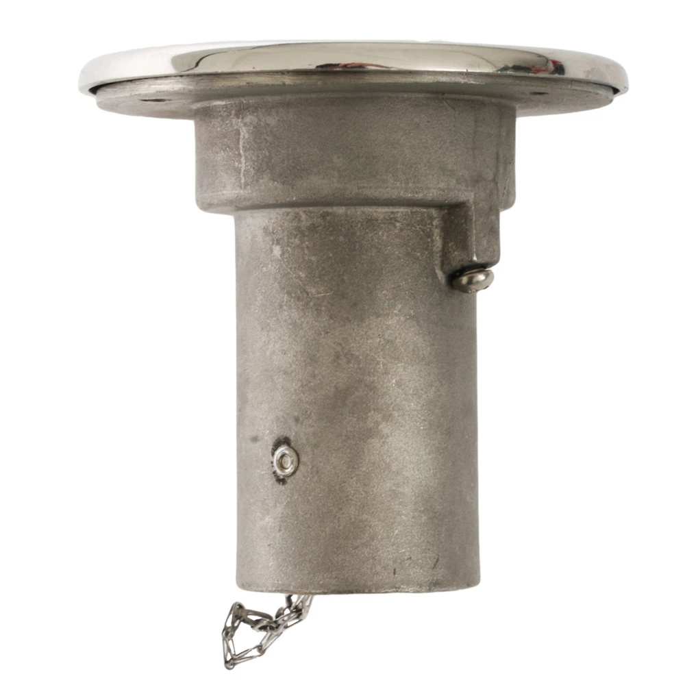 | Stainless Steel (AISI 316) deck entry with highly polished watertight cover. Laser etched label denotes ‘UNLEADED PETROL’. Standard winch handle star socket type. For 38mm ID ISO7840 hose. |