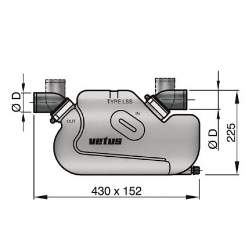 The VETUS Type LSS Waterlock has a very large capacity, exceptionally suitable for use in systems with extra long exhaust pipes. An extra large capacity waterlock is of vital importance for a sailing ship, which will roll and pitch in rough water with the engine off.