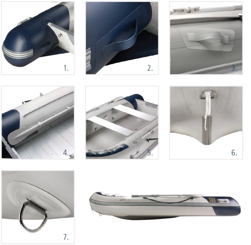 The VETUS VB Traveller Inflatable Boat is ideal for short trips, for example as a yacht tender. The compact dimensions when deflated make this model very convenient when transportation or storage is an issue. It’s equipped with an inflatable deck. The decks are manufactured using drop-stitch technology. This construction is also used in inflatable surfboards and handles the extremely high pressure needed for performance. When under pressure, the air deck offers a robust flat surface to stand on and creates a performance